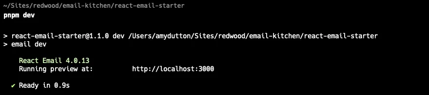 Section titled “Installation”Install the React Email components to your project by running the following command in the Terminal: